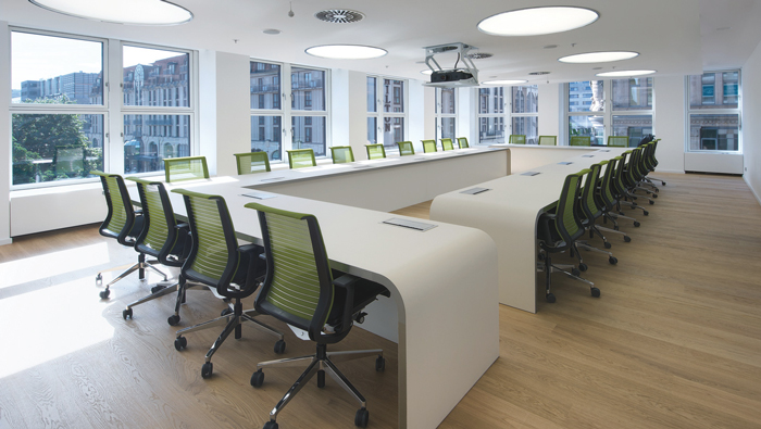 會議室的設計:此處可以容納將近30個人,在這里開放是空間的主旋律,在這里員工感受到的是一種輕快之感,這也是設計師希望看到的,在設計師看來一個輕快的會議空間,可以在無形中化解對于員工的壓力,讓員工可以在這里的空間中得以自由發揮。