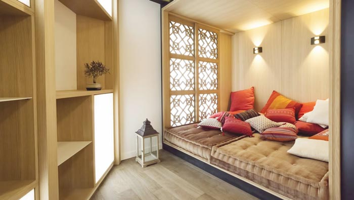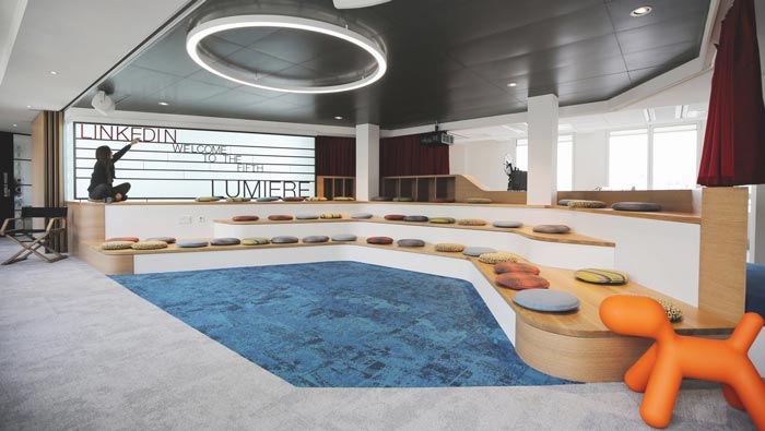 休息區(qū)域的設(shè)計:此處采用的是層級的變化,以此來提升空間的承載能力,一個小小的坐墊就完成了整個空間的設(shè)計,這樣的設(shè)計看起來簡單又實用,在設(shè)計師看來設(shè)計本身就是簡簡單單的,沒有必要搞得過于復雜,員工在這樣的空間之中可以去除心中的隔閡,展望美好的未來,讓其中毫無阻礙。