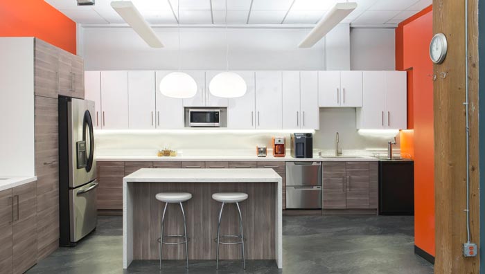茶水間的設(shè)計(jì):此處設(shè)計(jì)師以廚房為原型做為設(shè)計(jì)參考,目的就是將空間打造成一個(gè)集辦公與家庭相結(jié)合的空間,讓員工在辦公的同時(shí)無時(shí)無刻都感受到家的溫馨,這樣對于企業(yè)的發(fā)展有很好的促進(jìn)作用,設(shè)計(jì)師希望讓關(guān)心、溫暖成功企業(yè)的代名詞,讓關(guān)心、溫暖成為企業(yè)發(fā)展產(chǎn)品的動(dòng)力與原則。