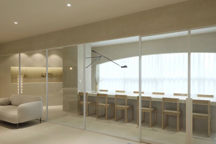 米色的色調和柔和的光線為空間營造出舒適的氛圍。整個空間呈現出一種輕松、優雅的感覺。 企業希望在為員工提供更好的工作環境的同時,可以讓員工產生更多的靈感。設計師將自然元素和紋理放入空間中,希望為空間提供舒適而獨特的體驗。