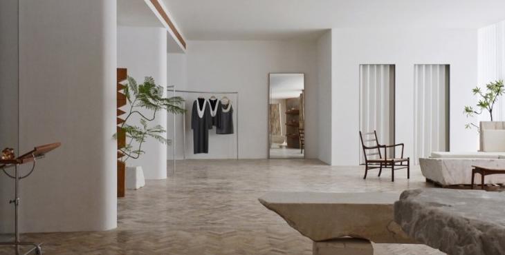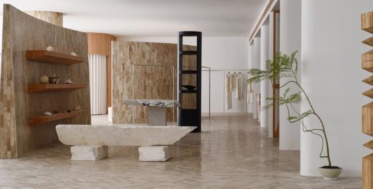 在材料上,鑲嵌在地面的來自海洋的貝類、直接從石場拉來的石方、北美松木清新的香氣,呼應著這個塑造“自然的形狀”的服裝品牌的質地。這些設置有利于有效率的工作和放松下來兩種狀態(tài)并存。我們希望它既能為工作提供便利性,但當你放松下來,這個辦公室又是一個令人感到舒服的地方。