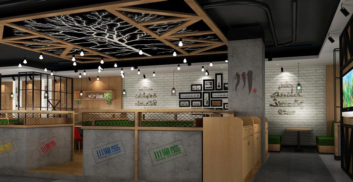 本次川漁館裝修設計方案講解到此結束,在本次川漁館設計中,“川”字被賦予了獨特的屬性,在川漁館室內設計中,設計師以大氣、簡約、現代為設計主題,目的就是希望為客戶營造一個優質的川菜就餐環境。
