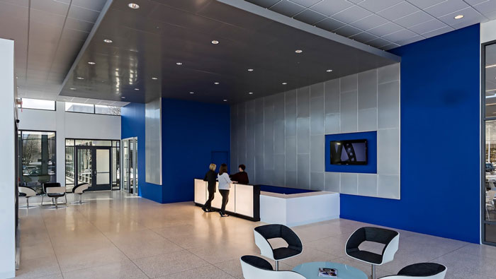 汽車工廠走廊裝修設計:走廊是辦公樓與外界連接的重要過渡,走廊既可以阻隔強烈的陽光,同時也可以起到避雨的功效,同時員工在工作之余,可以透透氣,可以稍事休息。