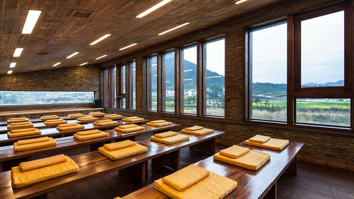 廠房走廊裝修設計:在這里雨水充足,在下雨時節可以坐在走廊上,看看蒙蒙細雨、看看大自然的變化,也是一種心靈的享受,設計師在不破壞自然的前提下,打造優質的生活環境。