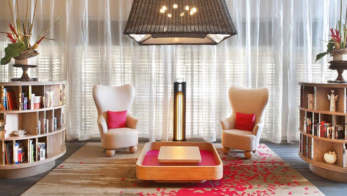 戶外客房的設計:此處位于酒店的一樓,這也是設計師的突發奇想,在我們看到客房基本上都在樓上,但是設計師認為那樣就浪費了這里的大好美景,故此設計師將客房布置在一樓的一側,此處讓顧客在室內與室外之間互相轉化,讓顧客與美景更加接近。