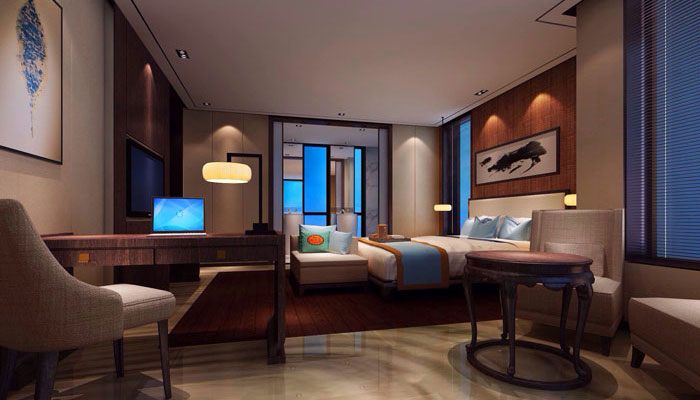 現代、中式混搭私人會所臥室裝修設計案例效果圖