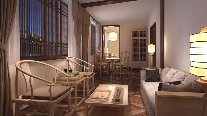 單人間的設計:此處為一個人和情侶所特意準備的,當我們一個人旅行在外的時候,我們往往要尋求的就是心中的寂靜,也就是尋回我們自己的心,在此時叫上一杯茶,坐在茶區慢慢的品嘗,同時欣賞外界的景色,夜晚的萬物寂靜也為顧客的心尋找一點慰藉,情侶在這種情況下體會到的是古人的生活方式。