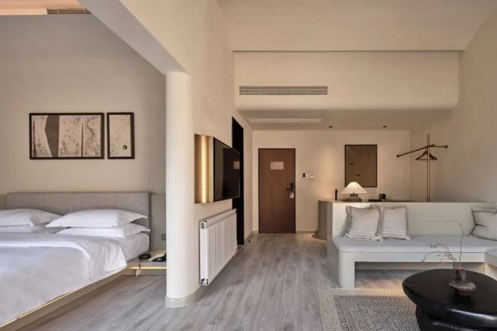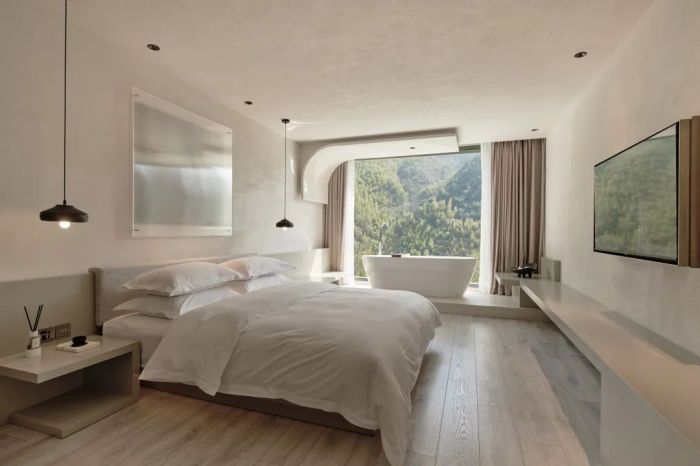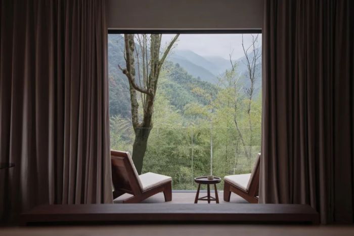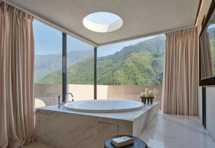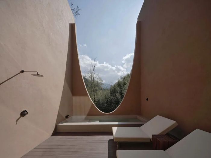 善侒酒店位于竹海山林深處,建筑設計融入自然元素,采用當地材料,展現出與自然和諧共存的美感。酒店擁有17間客房,各自擁有獨特的風景和設計特色,比如“赤樓”的米色墻面和流暢線條、“頤樓”的私享庭院以及“需樓”的巨大U型泡池。