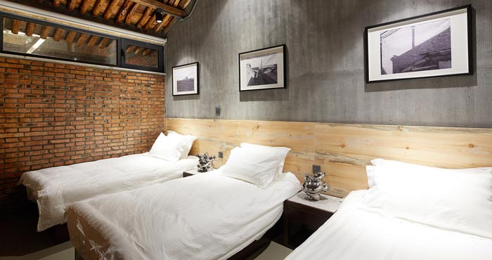 本案為景區三合院民宿設計項目,坐落在自然風景區山腳下,設計保留了傳統的北房,拆除東西兩側的格局,既開闊了視野,又盡可能保證了院內的私密性。