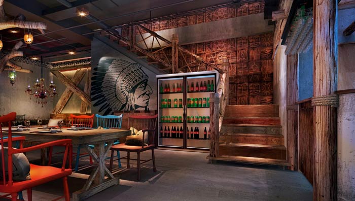 燒烤店門面設計:在城市之中,鋼筋水泥遍地都是,但是原生態的東西卻是少之又少,業主也是抓住這個原則,希望在城市之中打造一抹不同,讓客戶在這里尋回曾經的美好回憶。