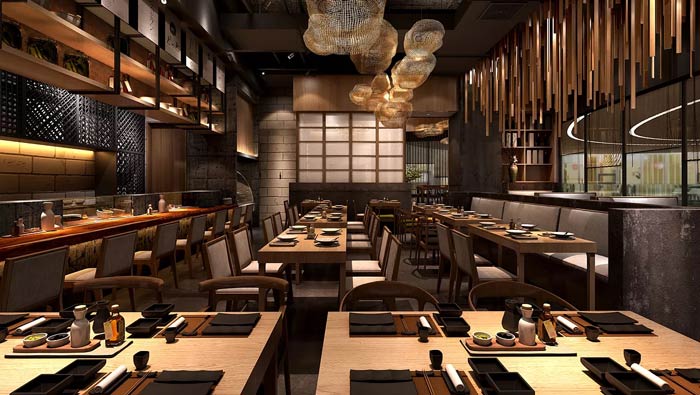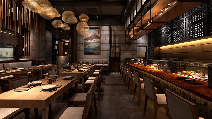 本次為日式料理餐廳裝修設計方案,在本次日式餐廳的設計中,設計師首先需要做的就是將其本土化,任何外來的東西,不經過改變都是難以生存的,餐飲設計更是如此,故此設計師在日式餐廳的基礎上,進行了調整與優化,讓其更加實用中國市場,只有如此餐廳才能生存,才能涅槃重生。