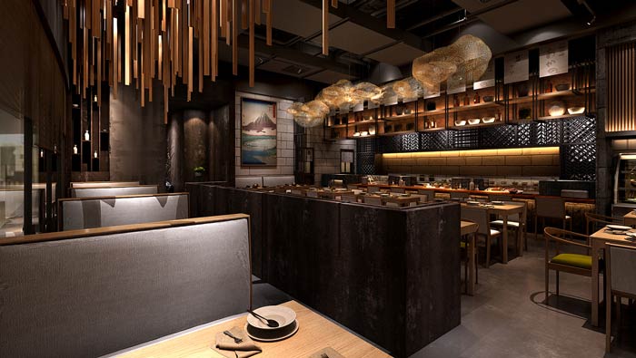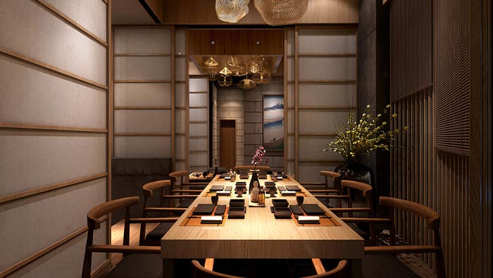 本次日式料理餐廳裝修設計方案講解到此結束,在本次日式餐廳的設計中,設計師首先需要做的就是將其本土化,只有如此餐廳才能生存,才能涅槃重生。