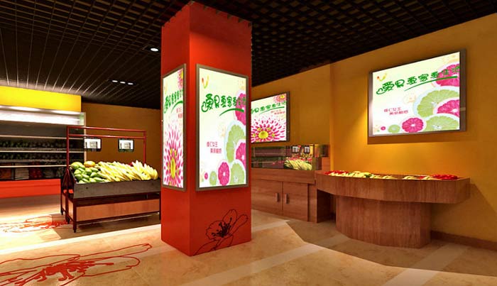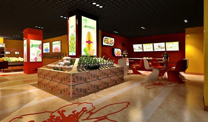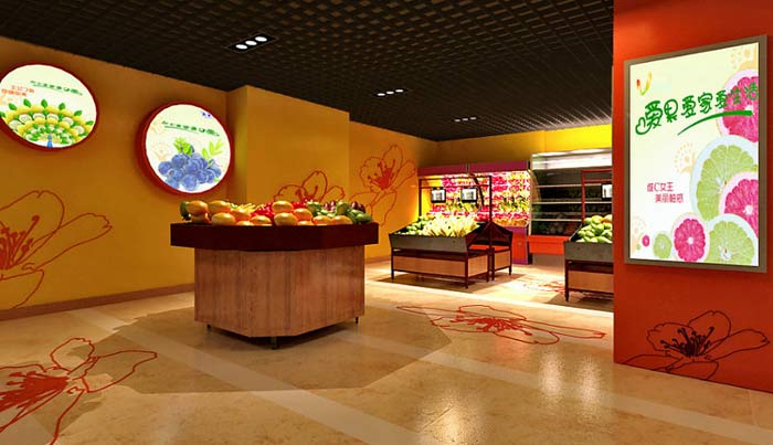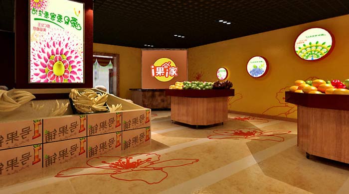 水果店格局采用讓客戶有自由的購物方式和放松的感覺,好像進入田園的氛圍。