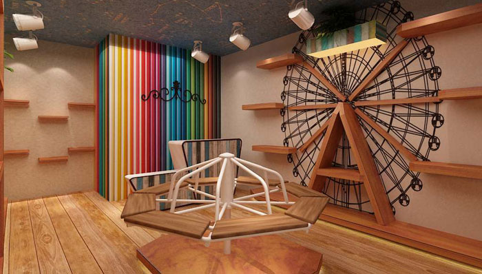 設計理念:設計師在室內設計的時候,加入了童話的元素,感覺進入到童話的世界一般,引起人們對童心,不管是小孩還是大人都有自己的童心所在,設計師希望可以借此增加店鋪的魅力。