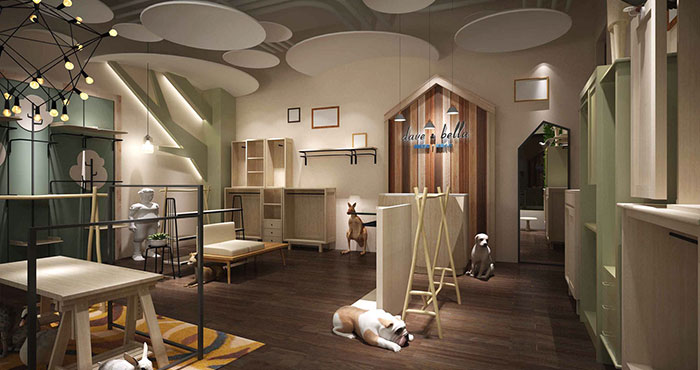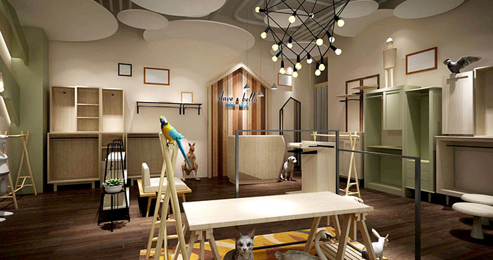 以后現代主義為主導,融入了西方抽象派的夸張手法來突出品牌店面風格,其中用材考究、簡練,色調搭配不拘一格,氣氛另類、典雅,使人感覺清新、心曠神怡。
