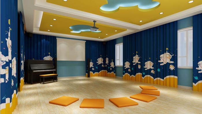 音樂教室的設(shè)計(jì):對于每一個人來說,音樂都是美好的,對于孩子來說更是如此,當(dāng)老師彈起鋼琴的時候,孩子們在后面翩翩起舞,無疑可以激發(fā)孩子們對于音樂的興趣,這里的一切都志在激發(fā)孩子的興趣,然后在興趣的指引下,達(dá)到教學(xué)的目的。