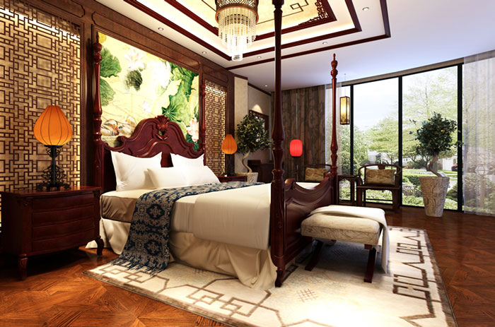 別墅臥室設(shè)計特別強調(diào)于塑造出溫馨的環(huán)境,因此別墅設(shè)計師將戶外的自然景觀與室內(nèi)的諸多古典設(shè)計元素進行了完美的融合,這也是案例別墅裝修設(shè)計的特色所在。