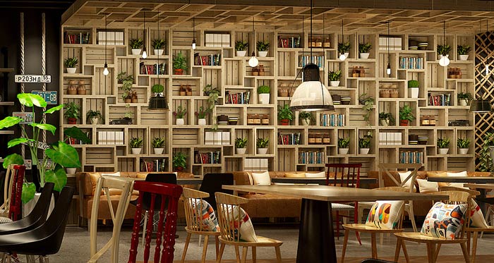 韓式主題餐廳裝飾墻設(shè)計:裝飾墻上擺放著各式各樣的裝飾品,其一是為了裝飾空間,其二是為了讓空間更加美麗,綠色的綠植擺放在裝飾墻上,讓空間變的美麗、自然。