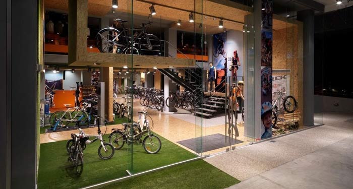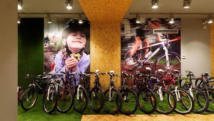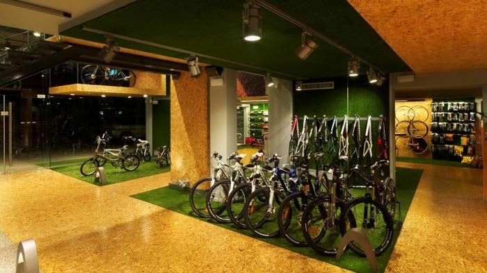 自行車店設計:綠色天然草坪自行車店裝修設計案例