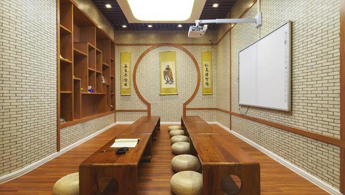 古學(xué)區(qū)域的設(shè)計(jì):此處可以容納12位學(xué)員,此處的目的不在于學(xué)習(xí),而在于培養(yǎng)孩子學(xué)習(xí)的興趣,讓孩子們從小就對(duì)古代圣賢有一個(gè)直接的了解,為未來的學(xué)習(xí)奠定基礎(chǔ),孔子是中國(guó)歷史上偉大的教育家、思想家,設(shè)計(jì)師希望孩子可以從小去熟悉他,并以他為榜樣不斷進(jìn)步、不斷學(xué)習(xí)、不斷自勉。